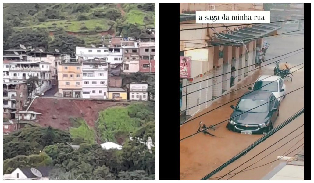 VOLUME DE CHUVA EM CARANGOLA ACUMULA 52,8 MM EM APENAS UMA HORA E CAUSA DESLIZAMENTOS E QUEDA PARCIAL DA RUA FERVEDOURO; DEFESA CIVIL TRABALHA COM SUA EQUIPE DANDO ASSISTÊNCIA AOS AFETADOS